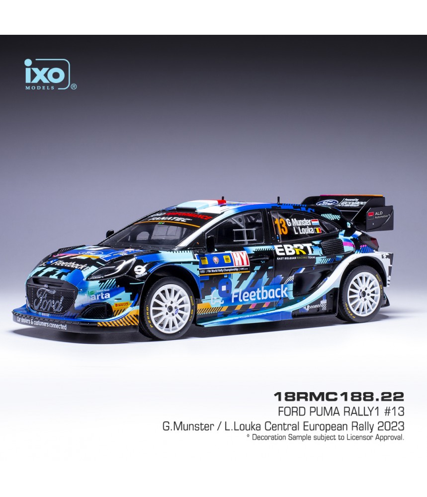 Miniature de la Ford Puma Rally1 avec laquelle le jeune pilote belgo-luxembourgeois Grégoire Munster et son co-pilote Louis Louka ont participé au Central European Rally 2023. C'est leur premier rallye au volant d'une Rally1.