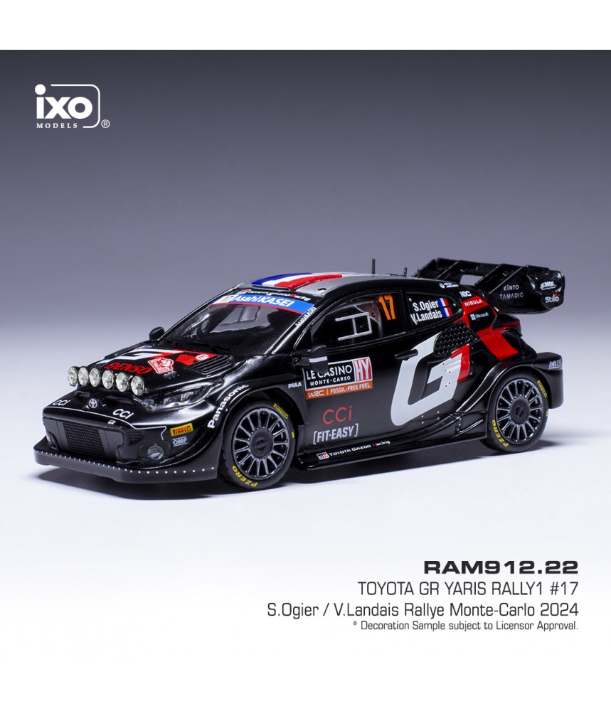 Miniature diecast de la Yaris Rally1 de Sébastien Ogier lors du Monte Carlo. Cette miniature à l'échelle 1/43 du fabricant Ixo Modelcars.